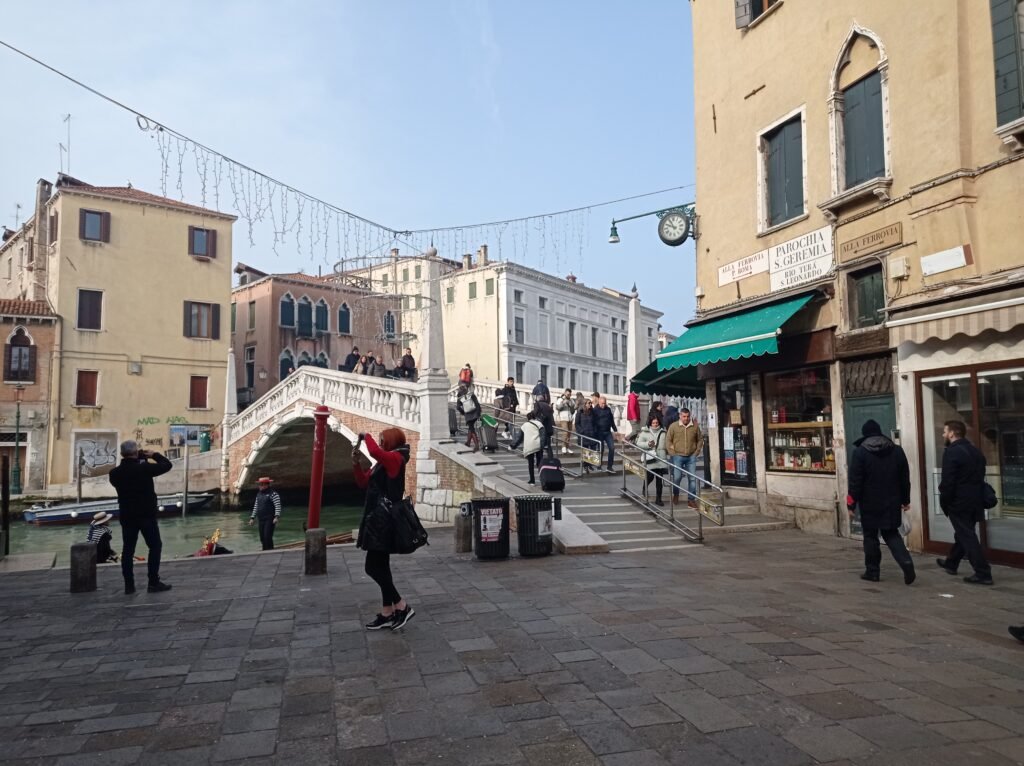This is the crowded main path in Canareggio. On right, the yellow signage points to Ferrovia (the railway station of Venezia Santa Lucia).