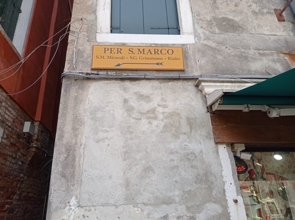 By signage I mean this kind of yellow signboards that point to Venice’s major landmarks – Rialto Bridge, Ferrovia (Venezia Santa Lucia railway station), Piazza San Marco, Piazzale Roma and Accademia Bridge (and more). The red area in the above photo has a lot of these.